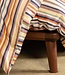 Het gestreept dekbedovertrek Donna is een ode aan ritme en balans. De verticale strepen variëren subtiel in breedte en kleur, waardoor een speels maar harmonieus geheel ontstaat. In deze uitvoering vormen diepe blauwtinten de basis, aangevuld met zachte accenten in onder andere groen en warme aardetinten.