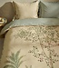 Het prachtige dekbedovertrek Fata Morgana Zand heeft een print van een sereen landschap met ranke palmen en hoge bloesembomen op een zandkleurige achtergrond. De subtiele vogels die zich tussen de bladeren verbergen, voegen een speelse twist toe aan je slaapkamer. De achterzijde heeft een gestileerd bladerprintje, wat het overtrek veelzijdige look geeft.
