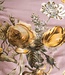 Het dessin van Florean is een waar kunstwerk. De bloemen zijn samengesteld uit zes verschillende kunstwerken uit het Rijksmuseumarchief, wat zorgt voor een unieke en rijke uitstraling. Je herkent onder andere sering, kamperfoelie, Oost-Indische kers, rozen en tulpen, die samen een speelse en elegante compositie vormen.
