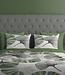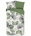 Het dekbedovertrek katoen Gigi van Goodmorning heeft een offwhite basis met een print van bladeren in zwart en verschillende groentinten. De onderzijde van het dekbedovertrek is in een effen groene kleur.