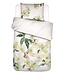Het Essenza witte dekbedovertrek Hellea is versierd met grote, aquarelachtig geschilderde bloemen en bladeren. De print is speels verdeeld over het oppervlak, waardoor een natuurlijk en los patroon ontstaat.