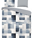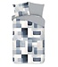 Het katoenen dekbedovertrek met rits Aiden heeft een abstracte, moderne print van blokken in verschillende blauwtinten. De achterzijde van het overtrek is uitgevoerd in een effen blauwgrijze tint. Dit overtrek is Oeko-Tex gecertificeerd (Oeko-Tex Standard 100), dit houdt in dat het vrij is van schadelijke stoffen en huidvriendelijk.