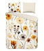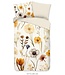 Haal de frisse energie van een bloemenveld naar je slaapkamer met het dekbedovertrek met rits Lara. Dit overtrek brengt een zachte explosie van kleur in je slaapkamer, met gedetailleerde veldbloemen in warme tinten van geel, bruin en een vleugje lichtblauw – allemaal tegen een rustige witte achtergrond. Het doet denken aan een zonnige ochtendwandeling door de natuur, maar dan vanuit je eigen bed. Keer je het overtrek om, dan krijg je een effen off-white zijde die rust en eenvoud uitstraalt.