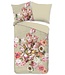 Het katoenen dekbedovertrek Miran Sand van Goodmorning heeft een zandkleurige basis met een weelderige bloemenprint in zachte tinten. De onderzijde van het dekbedovertrek is in een effen zand kleur.