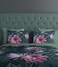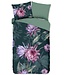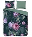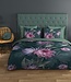 Het katoenen dekbedovertrek Nova van Goodmorning heeft een warme donkergroene basis met een bloemenprint in groen en roze tinten. De onderzijde van het dekbedovertrek is in een effen lichtere groentint.
