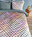 Vrolijk, sprankelend een eyecatcher zijn enkele woorden die het dekbedovertrek Rosie van Beddinghouse omschrijven. De diagonale kleurbanen, die samen ruiten vormen, stralen in alle kleuren van de regenboog tegen een zachte, witte achtergrond met een subtiele stofstructuur. De onderzijde van het dekbedovertrek is in een effen blauwe kleur.