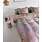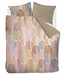 De combinatie van zachte trendkleuren – roze, blauw, groen, taupe en een vleugje geel – zorgt voor een frisse, harmonieuze uitstraling. Een prachtig samenspel van rust en dynamiek. Keer je het overtrek om, dan vind je een effen zandkleurige achterzijde die perfect combineert met de speelse print.
