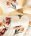 Het extra brede dekbedovertrek Tosca Vanille straalt romantiek en verfijning uit. De klassiek vormgegeven tulpboeketten zijn rijk geïllustreerd en zorgvuldig opgebouwd, waardoor de print diepte krijgt zonder druk te ogen. De zacht gelaagde bloemvormen geven het geheel een warme, uitnodigende sfeer die perfect past in een romantische, klassieke of landelijke slaapkamer.