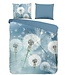 Het katoenen dekbedovertrek Wishfull van Goodmorning heeft een blauwe basis met een print van uitgebloeide paardenbloemen en ronddwarrelende pluisjes. De onderzijde van het dekbedovertrek is effen blauw.