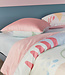 Het zoete kleurgebruik zien we gelukkig terug op de achterzijde van het biologische overtrek van Beddinghouse, in een waanzinnige effen zachtroze print. De matching kussenslopen zijn aan beide kanten te gebruiken, hierdoor varieer jij naar hartelust.