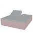 Splittopper hoeslaken van 100% zachte jersey-katoen. Jersey staat voor een speciale brei/weeftechniek katoen die ervoor zorgt dat het materiaal enigszins elastisch is. Het splitopper hoeslaken wordt gebruikt voor tweepersoons verstelbare matrasbodems. De functie voor het verstellen van de hoogte van de matrassen wordt behouden door een split van circa 85 cm aan de bovenzijde, aan de onderzijde is het bed opgemaakt als 1 geheel. De hoeslakens voor splittoppers zijn voorzien van elastiek rondom zodat het hoeslaken netjes op zijn plaats blijft. Door de elasticiteit en het elastiek rondom heeft een Jersey hoeslaken een perfecte pasvorm. Het split topper hoeslaken is geschikt voor topper matrassen met een maximale hoogte van 16 cm.